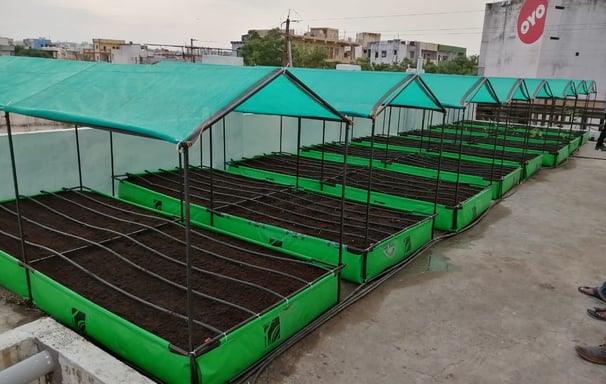 It helps reduce kitchen expenses, improves air quality, and uses idle rooftop space efficiently. You get organic, chemical-free vegetables straight from your terrace every day.